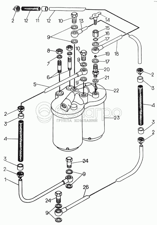 Каталог запасных частей к технике: ЧТЗ Т-170М-01. Установка топливного фильтра тонкой очистки