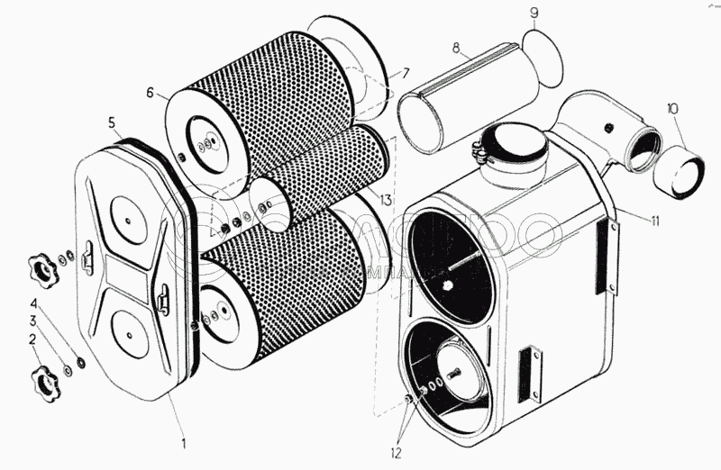 Каталог запасных частей к технике: ЧТЗ Т-170М-01. Воздухоочиститель дизеля