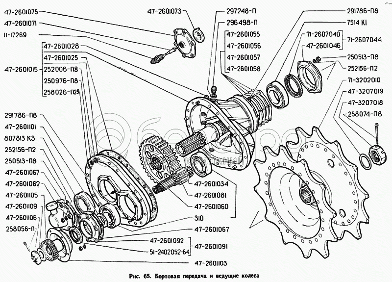 Каталог запасных частей к технике: ГАЗ-71. Бортовая передача и ведущие колеса