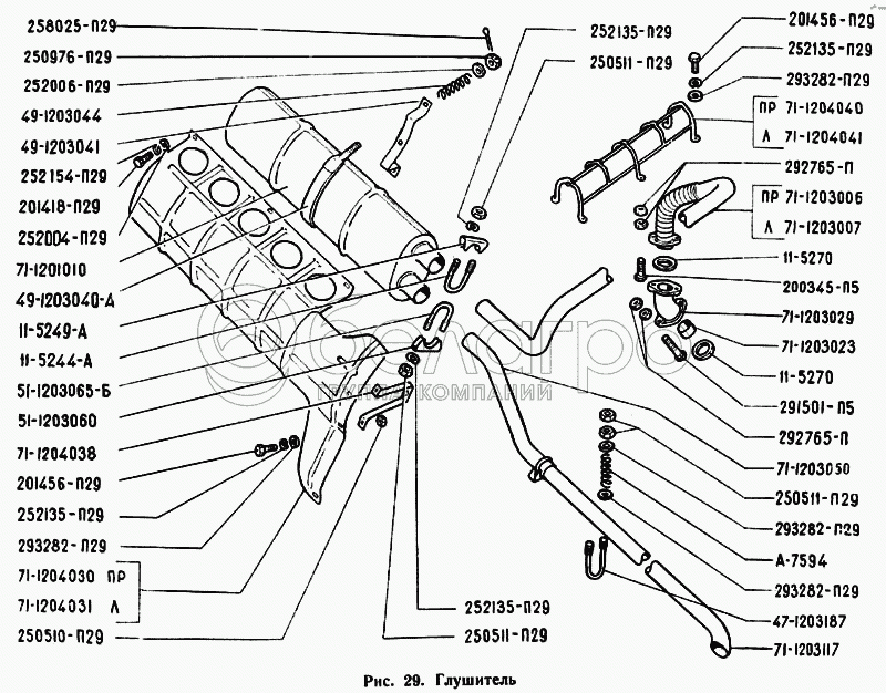 Каталог запасных частей к технике: ГАЗ-71. Глушитель