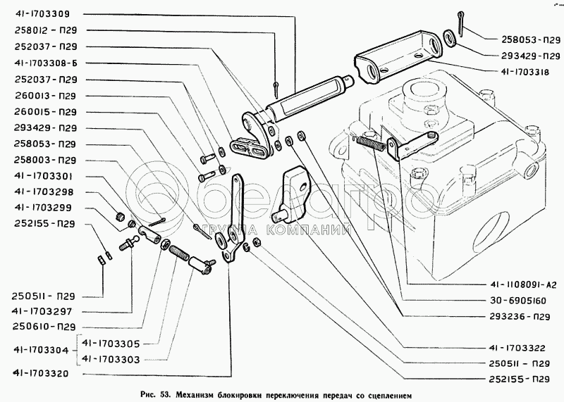 Каталог запасных частей к технике: ГАЗ-71. Механизм блокировки переключения передач со сцеплением