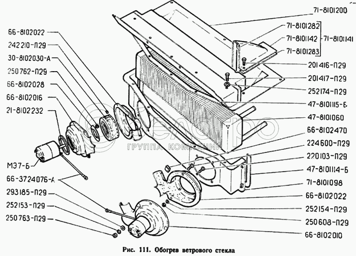 Каталог запасных частей к технике: ГАЗ-71. Обогрев ветрового стекла