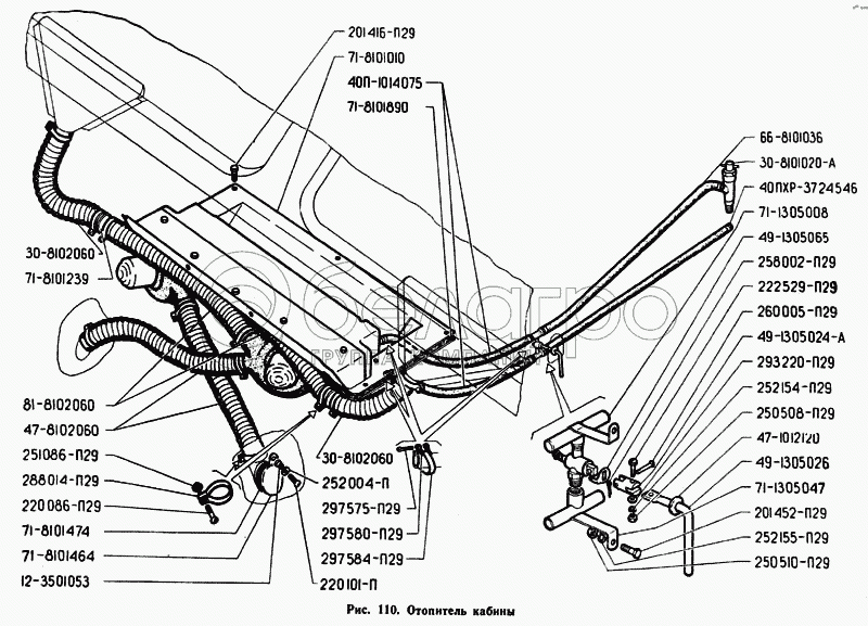 Каталог запасных частей к технике: ГАЗ-71. Отопитель кабины
