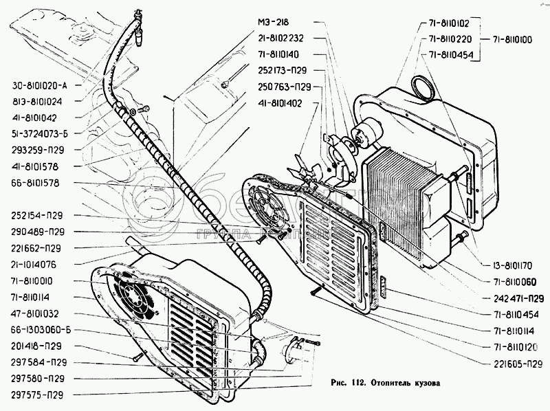 Каталог запасных частей к технике: ГАЗ-71. Отопитель кузова