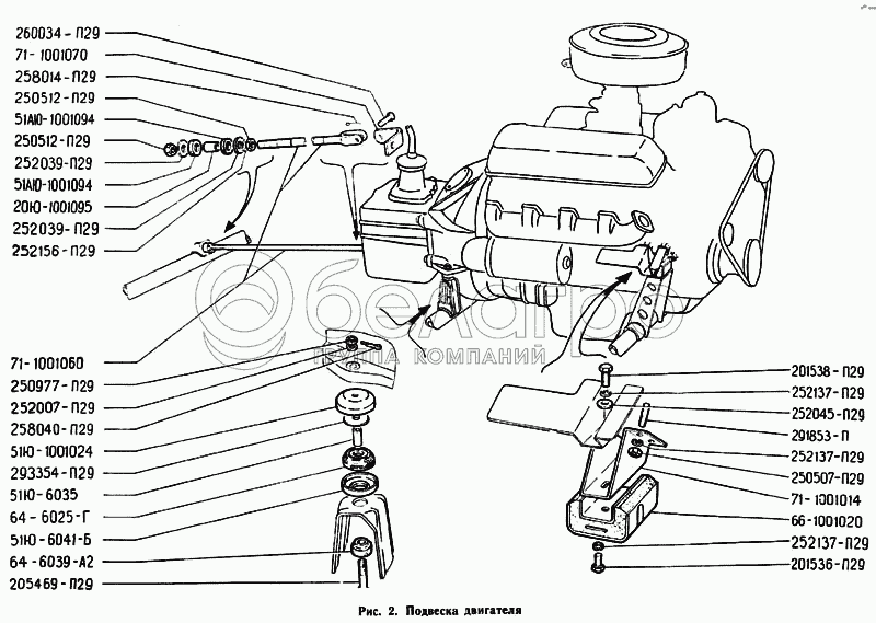 Каталог запасных частей к технике: ГАЗ-71. Подвеска двигателя