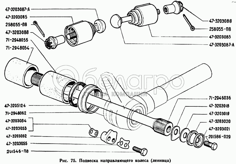 Каталог запасных частей к технике: ГАЗ-71. Подвеска направляющего колеса (ленивца)