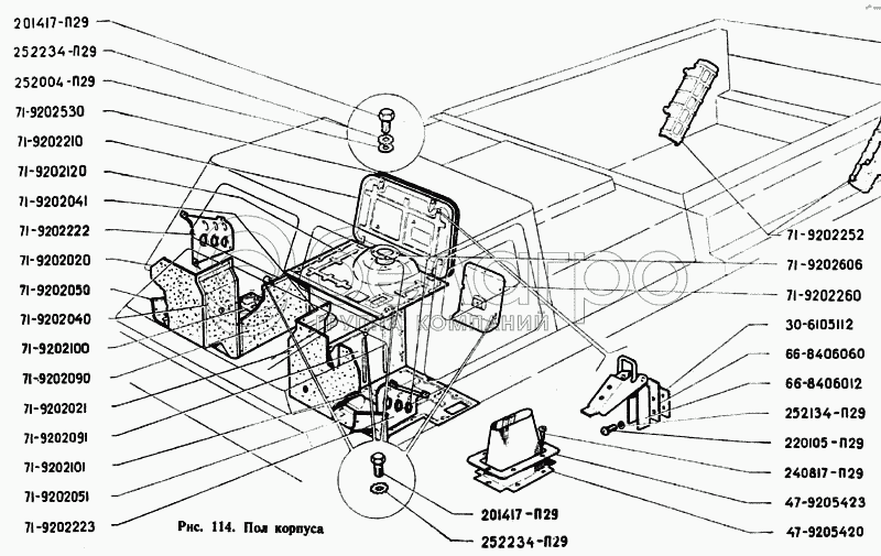 Каталог запасных частей к технике: ГАЗ-71. Пол корпуса