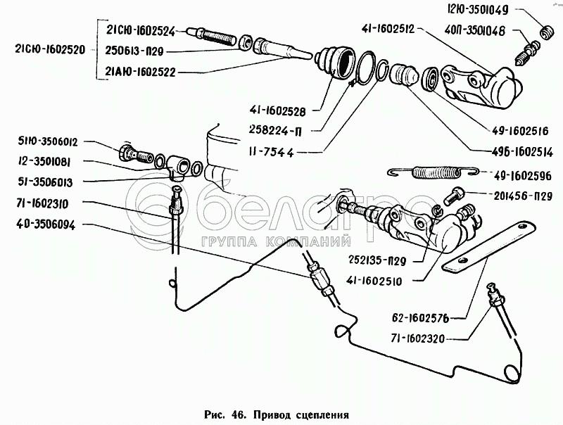 Каталог запасных частей к технике: ГАЗ-71. Привод сцепления
