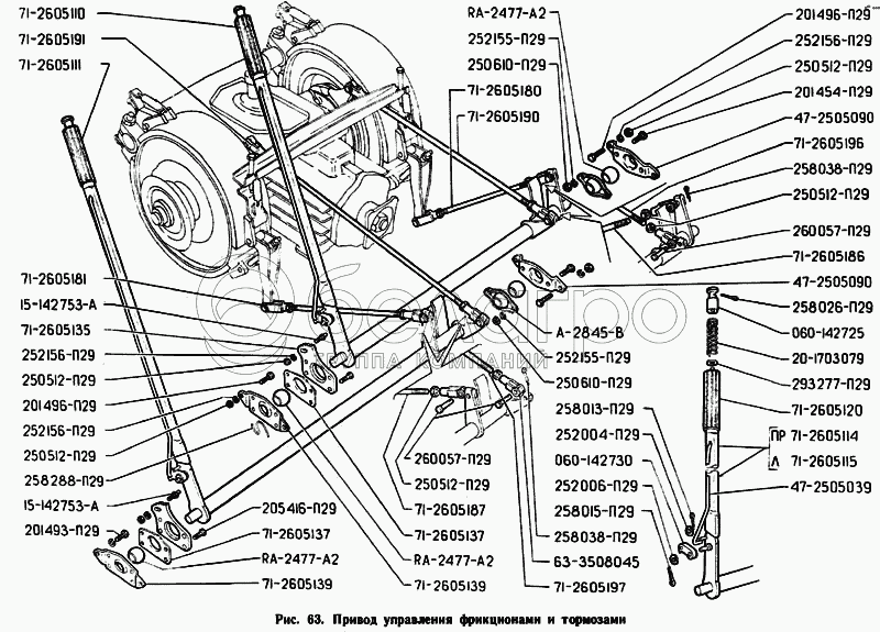 Каталог запасных частей к технике: ГАЗ-71. Привод управления фрикционами и тормозами
