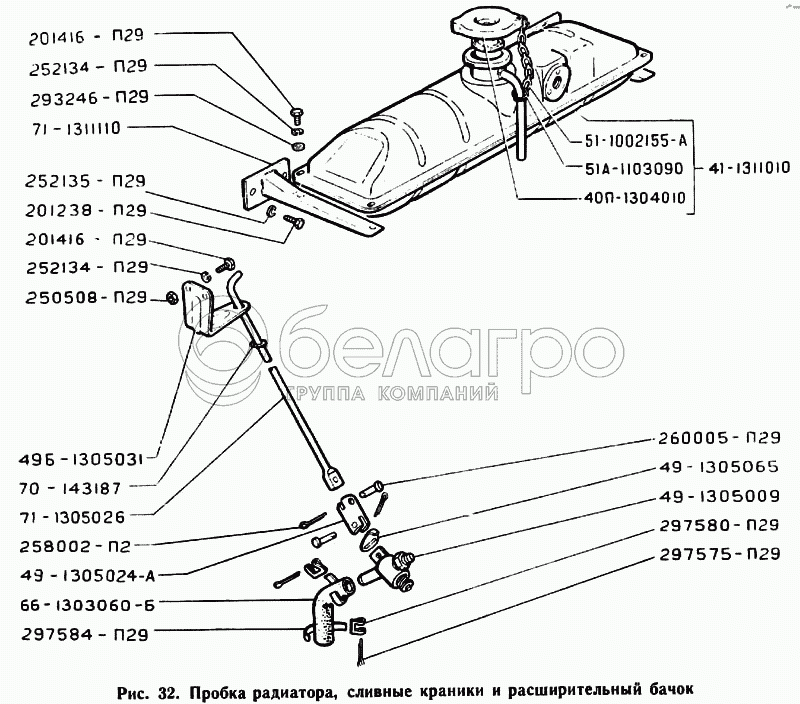 Каталог запасных частей к технике: ГАЗ-71. Пробка радиатора, сливные краники и расширительный бачок