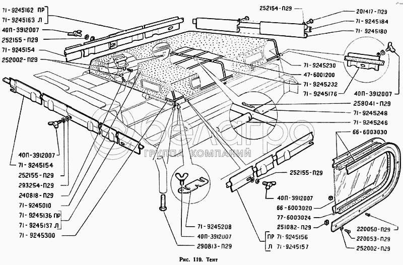 Каталог запасных частей к технике: ГАЗ-71. Тент