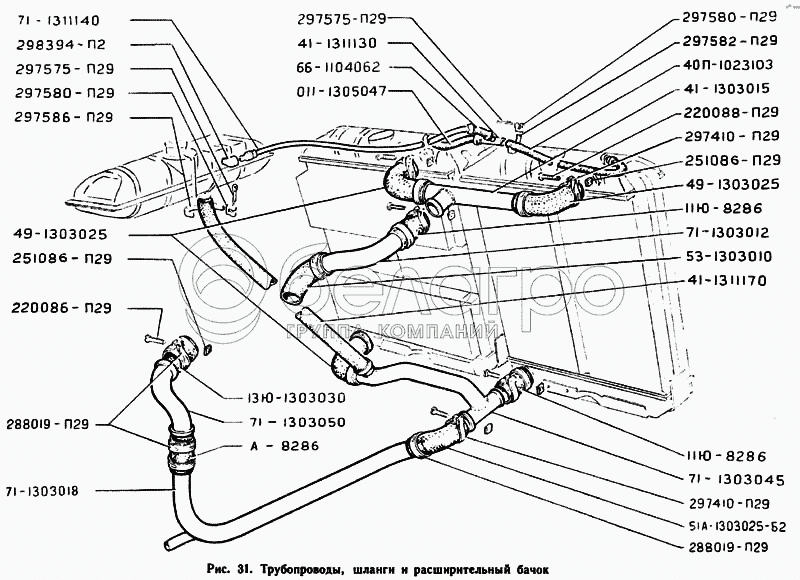 Каталог запасных частей к технике: ГАЗ-71. Трубопроводы, шланги и расширительный бачок