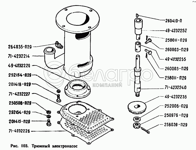 Каталог запасных частей к технике: ГАЗ-71. Трюмный электронасос