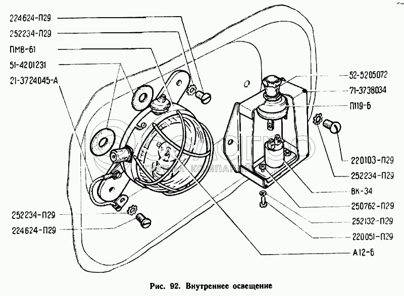 Каталог запасных частей к технике: ГАЗ-71. Внутреннее освещение
