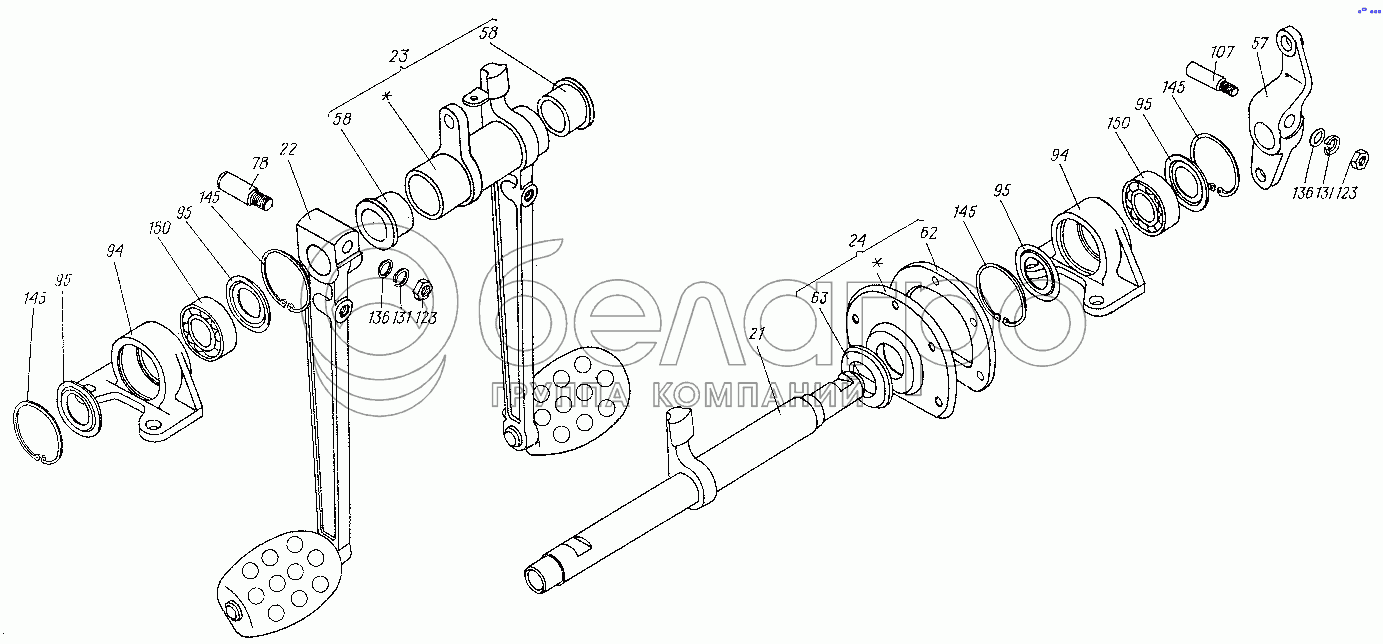 Каталог запасных частей к технике: ХТЗ МТ-ЛБ. Педали в сборе 6.22.042