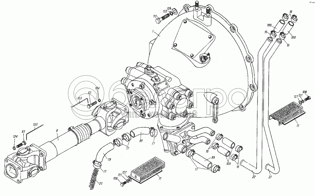 Каталог запасных частей к технике: ХТЗ МТ-ЛБ. Редуктор промежуточный. Установка 6.12.001