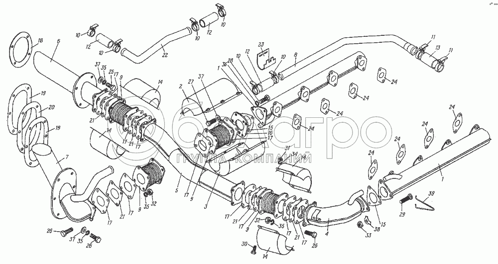 Каталог запасных частей к технике: ХТЗ МТ-ЛБ. Система выпуска отработавших газов 8.04.001