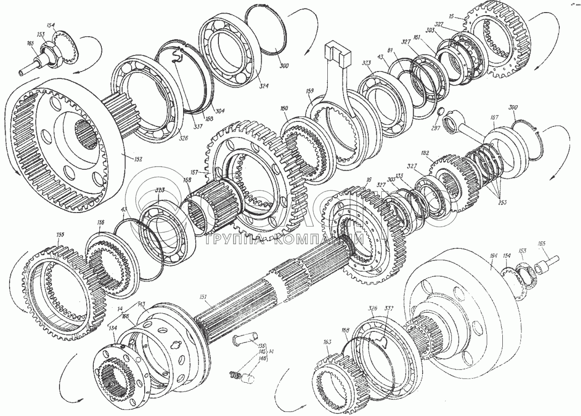 Каталог запасных частей к технике: ХТЗ МТ-ЛБ. Вал главный с шестернями 8.10.030
