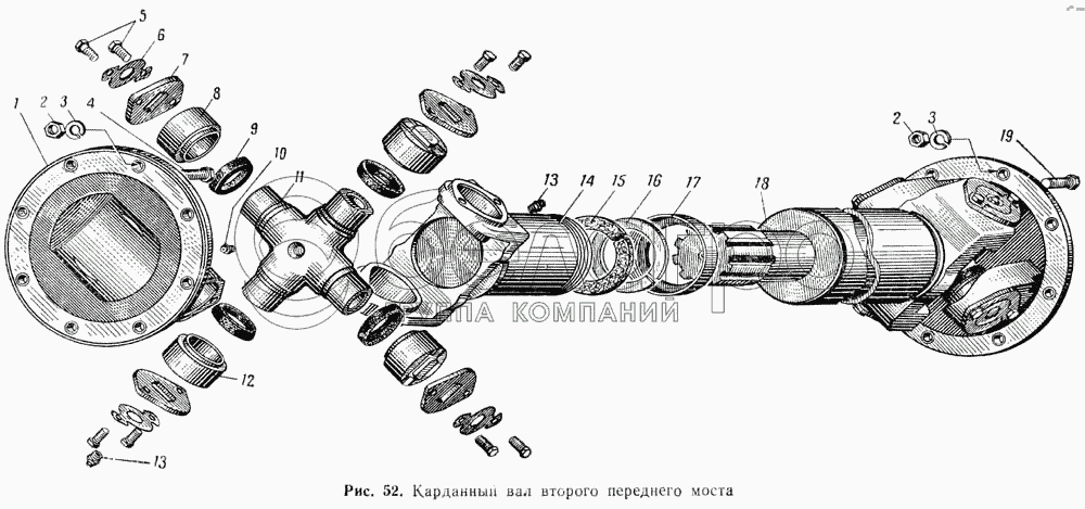 Каталог запасных частей к технике: МАЗ-537. Карданный вал второго переднего моста