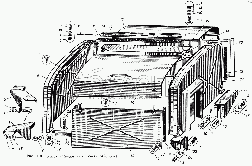 Каталог запасных частей к технике: МАЗ-537. Кожух лебедки автомобиля МАЗ-537Г