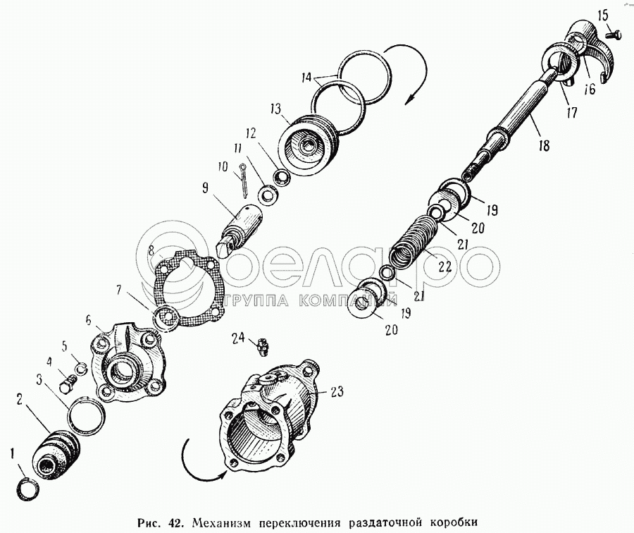 Каталог запасных частей к технике: МАЗ-537. Механизм переключения раздаточной коробки