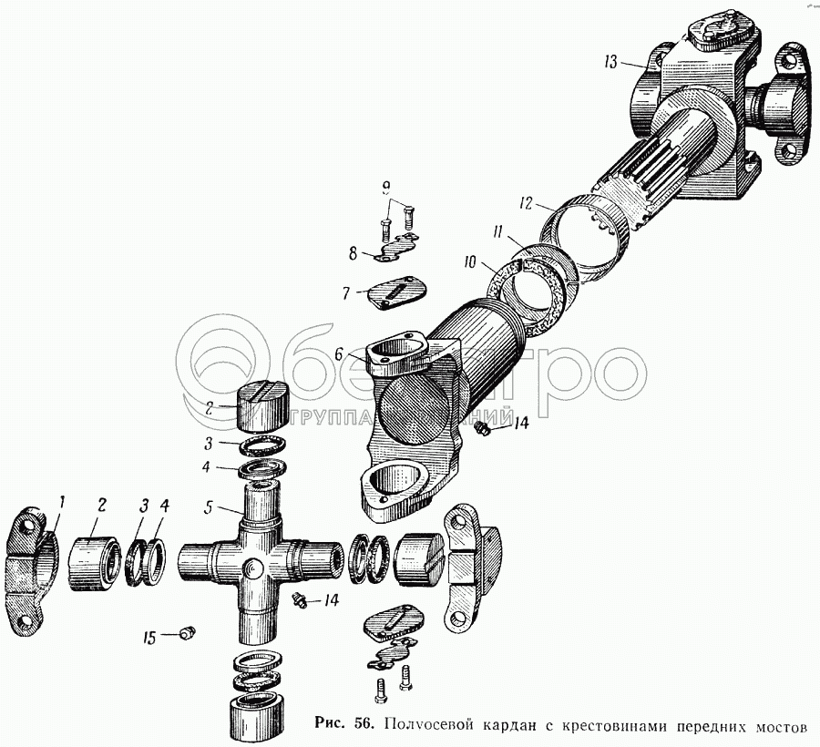 Каталог запасных частей к технике: МАЗ-537. Полуосевой кардан с крестовинами передних мостов