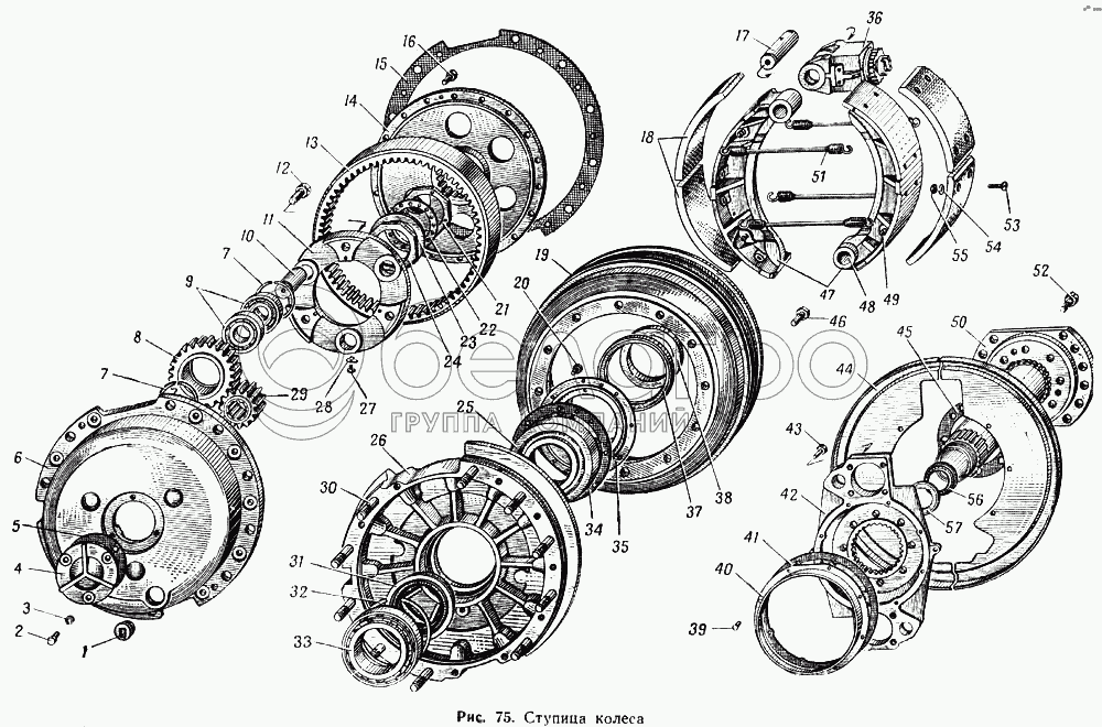 Ступица колеса с тормозным барабаном и подшипниками в сборе