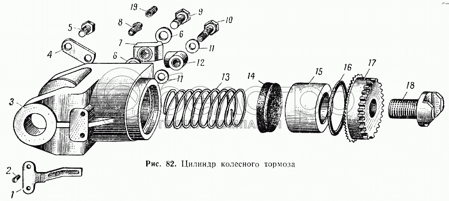 Каталог запасных частей к технике: МАЗ-537. Цилиндр колесного тормоза