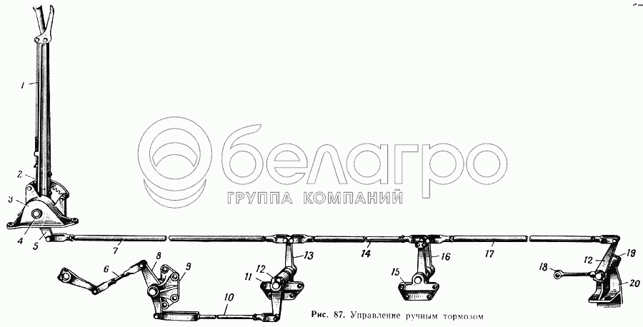 Кронштейн привода рычага тормозного крана с двуплечим рычагом в сборе