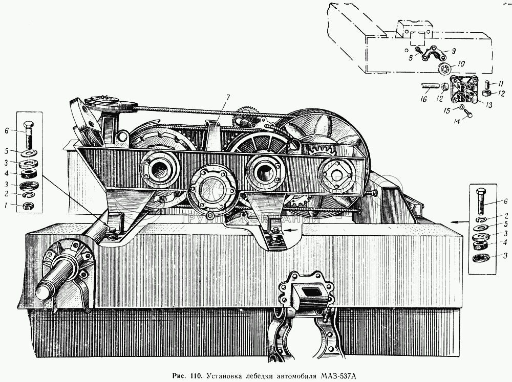 Каталог запасных частей к технике: МАЗ-537. Установка лебедки автомобиля МАЗ-537А