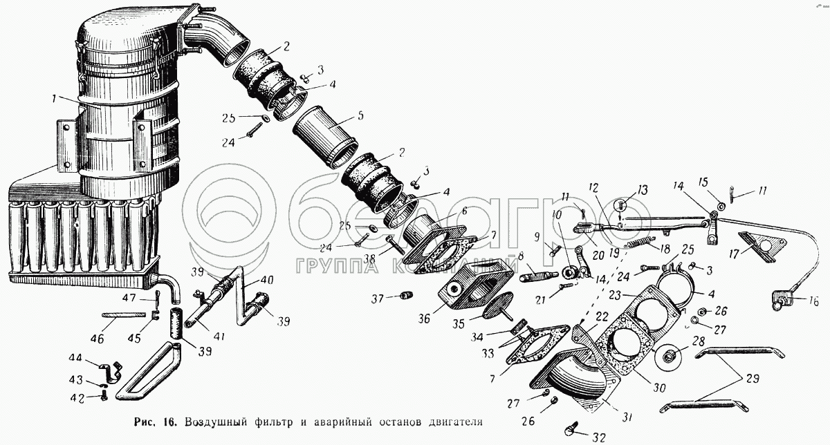 Каталог запасных частей к технике: МАЗ-537. Воздушный фильтр и аварийный останов двигателя