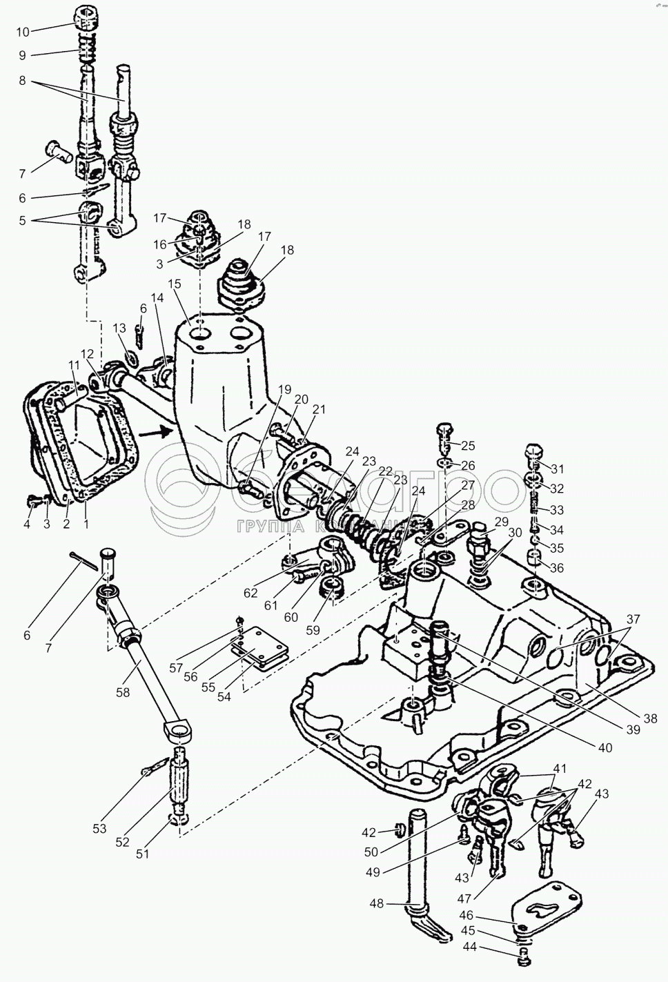 Каталог запасных частей к технике: МТЗ 1502. Механизм управления коробкой передач