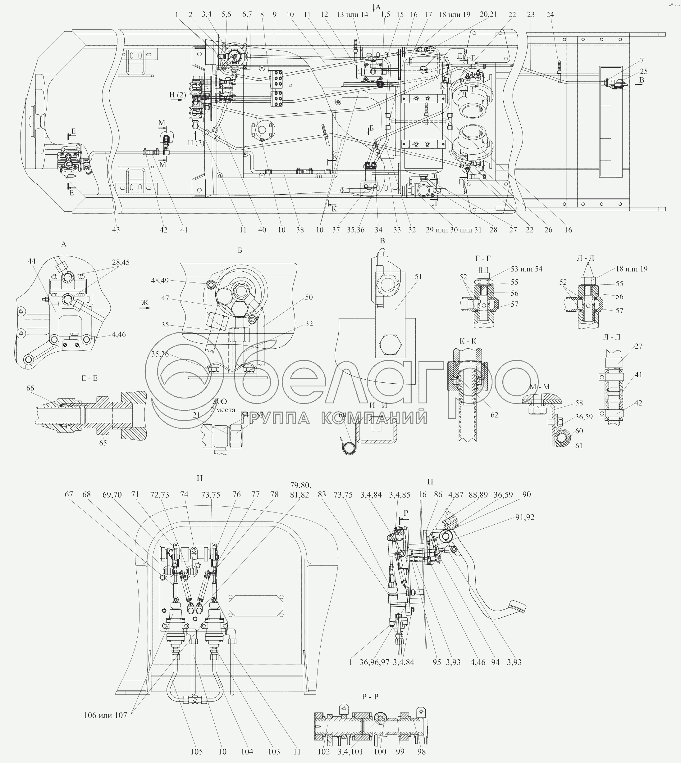 Каталог запасных частей к технике: МТЗ 1502. Система управления тормозами