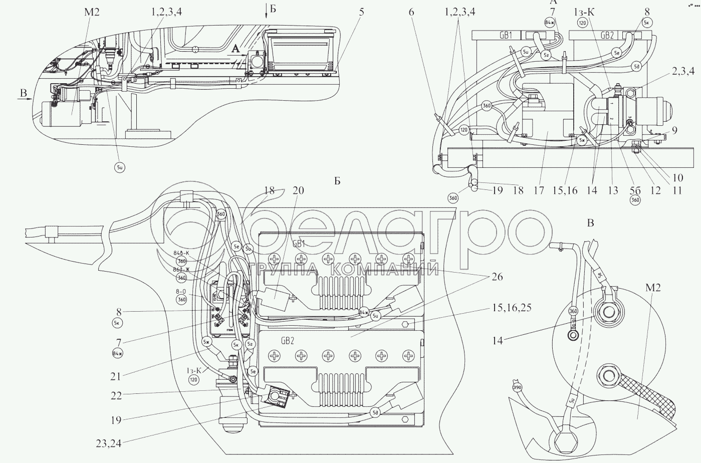 Каталог запасных частей к технике: МТЗ 1502. Установка батарей аккумуляторных