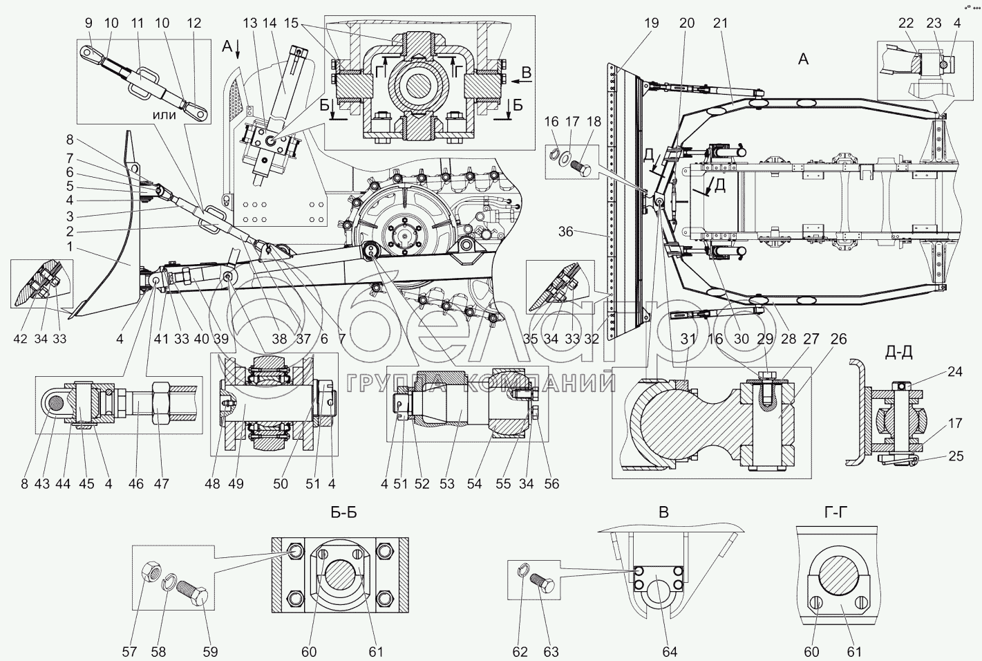 Каталог запасных частей к технике: МТЗ 1502. Установка отвала 1502-4607500