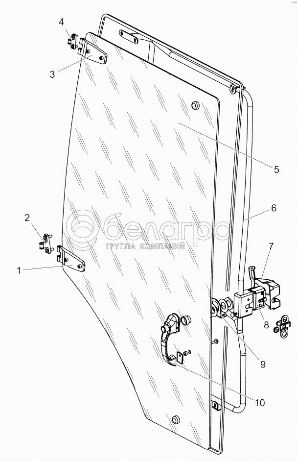 Каталог запасных частей к технике: МТЗ БЕЛАРУС 1502. Дверь правая. Стекло. Запорное устройство