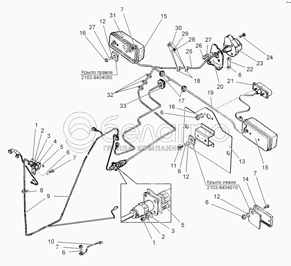 Каталог запасных частей к технике: МТЗ БЕЛАРУС 1502. Электрооборудование кабины. Установка фонарей задних