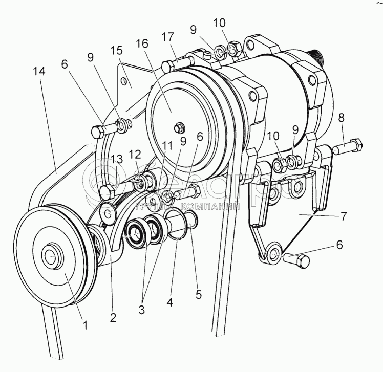 Каталог запасных частей к технике: МТЗ БЕЛАРУС 1502. Компрессор кондиционера с приводом. Рычаг натяжной