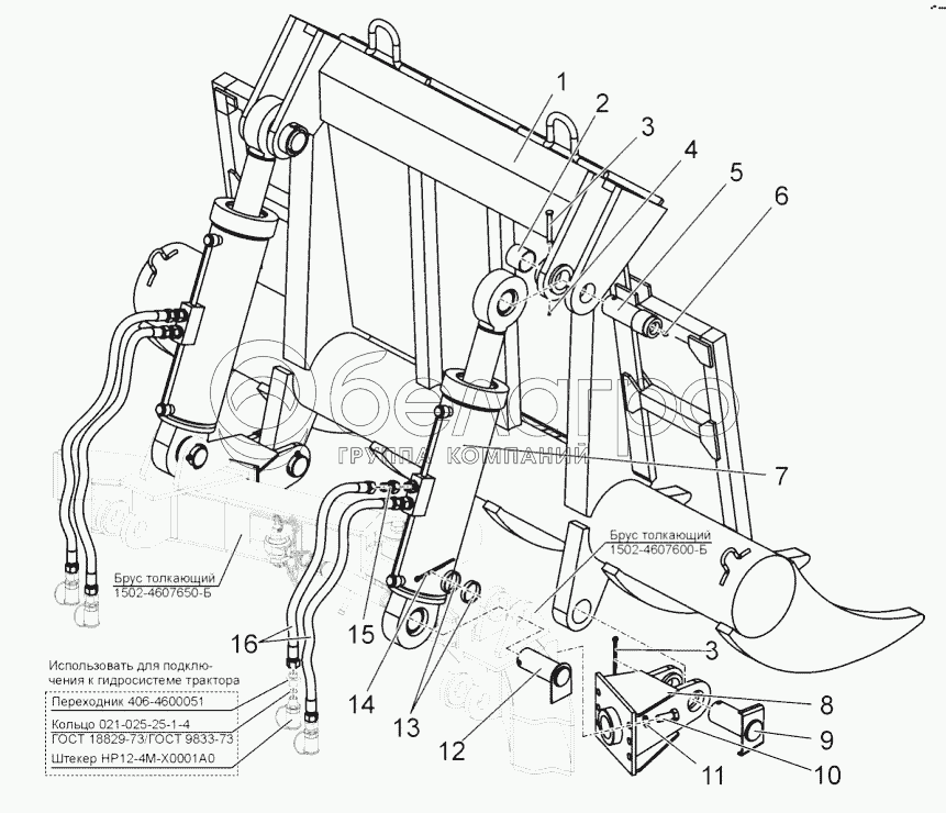 Каталог запасных частей к технике: МТЗ БЕЛАРУС 1502. Корчеватель. Комплект монтажных частей