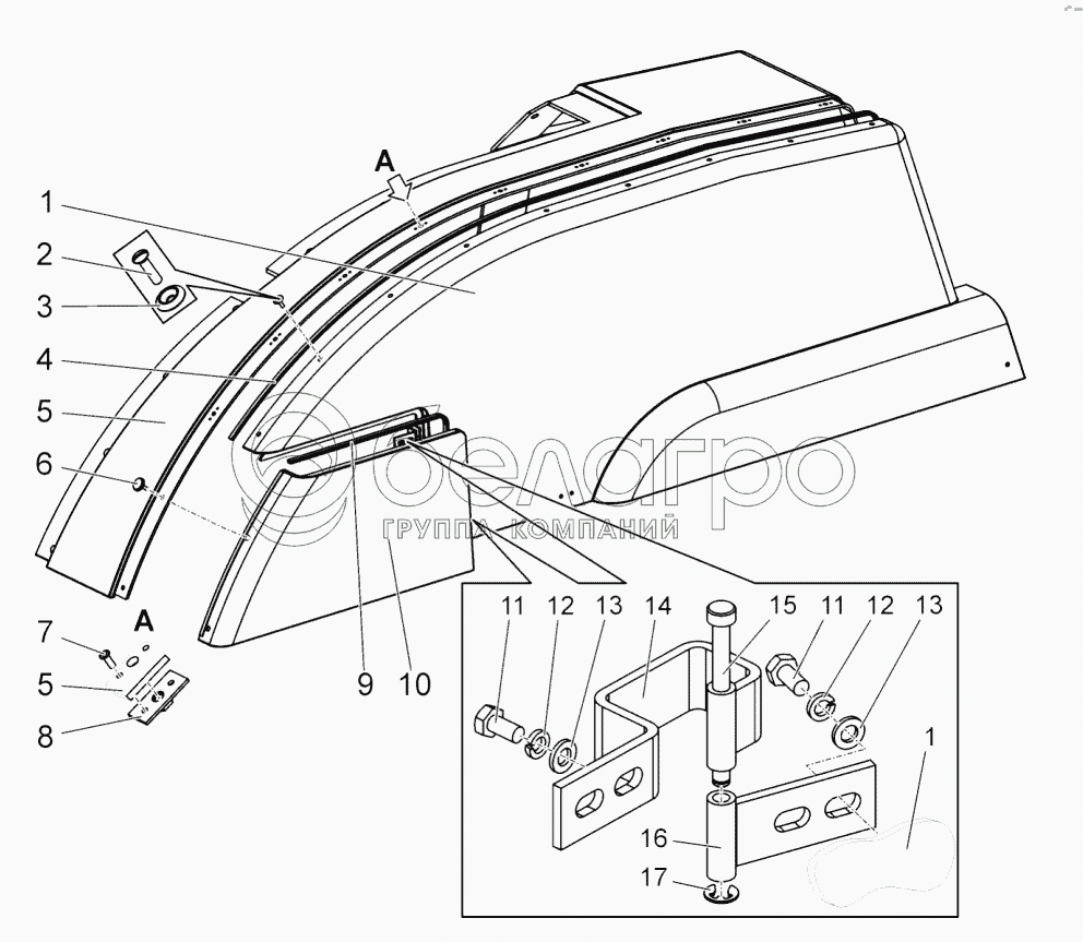 Каталог запасных частей к технике: МТЗ БЕЛАРУС 1502. Крыло левое