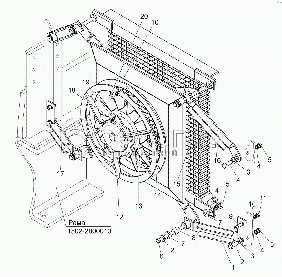 Каталог запасных частей к технике: МТЗ БЕЛАРУС 1502. Радиатор масляный ГСП