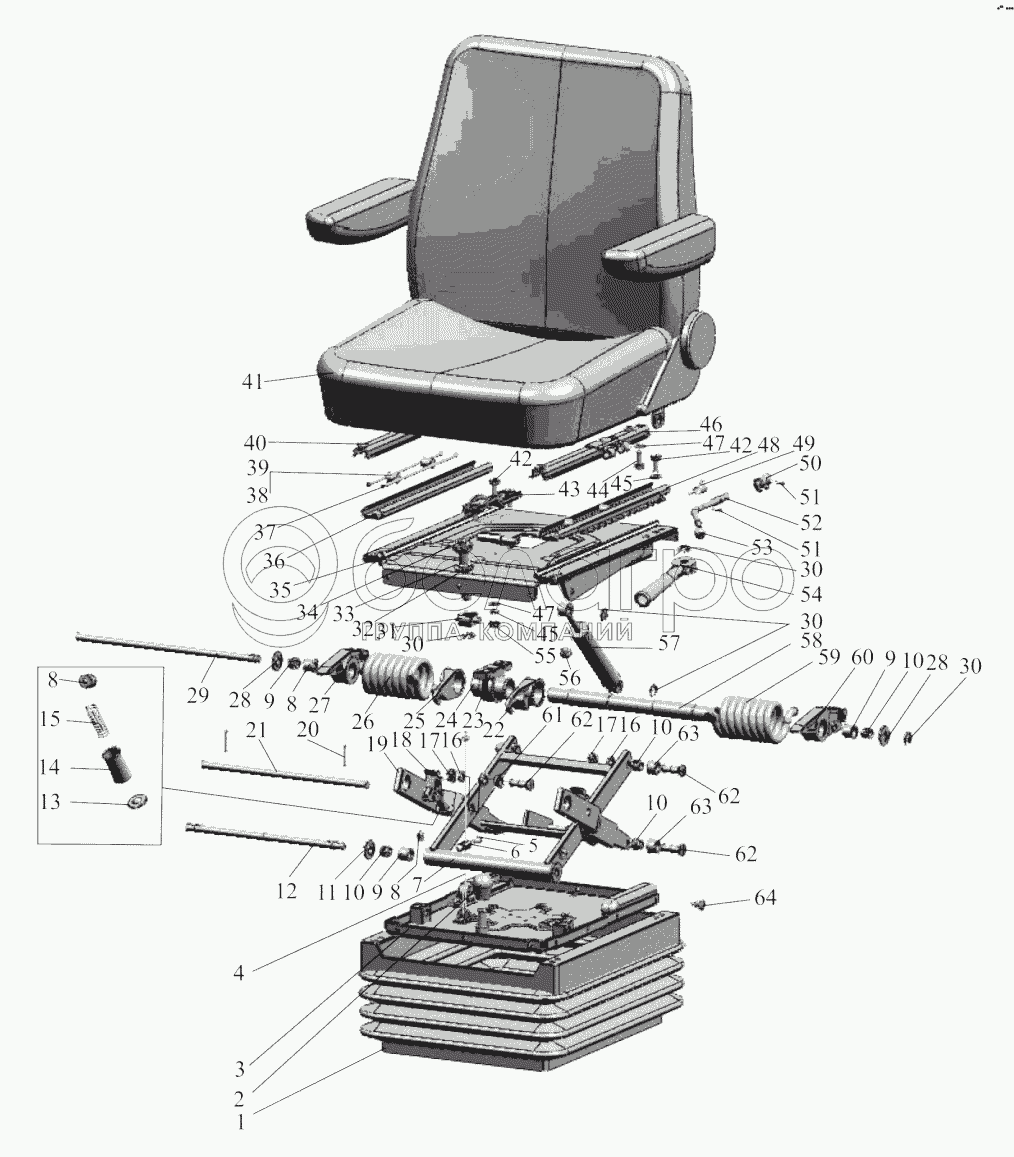 Каталог запасных частей к технике: МТЗ БЕЛАРУС 1502. Сиденье оператора. Салазки. Подвеска