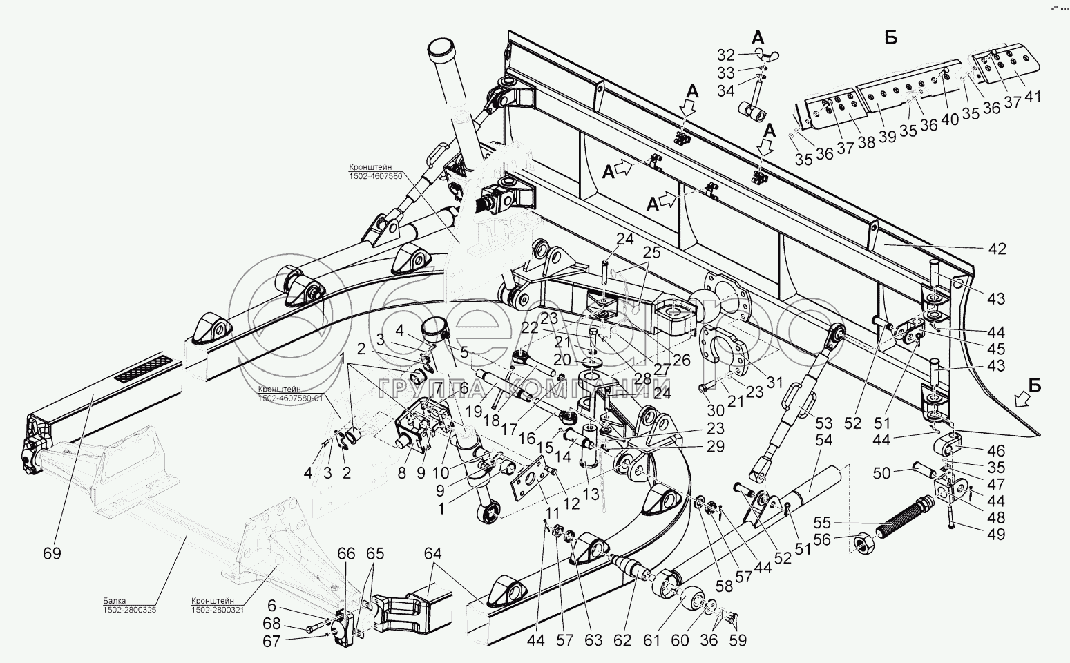 Каталог запасных частей к технике: МТЗ БЕЛАРУС 1502. Установка отвала. Вилка. Тяга верхняя. Винт