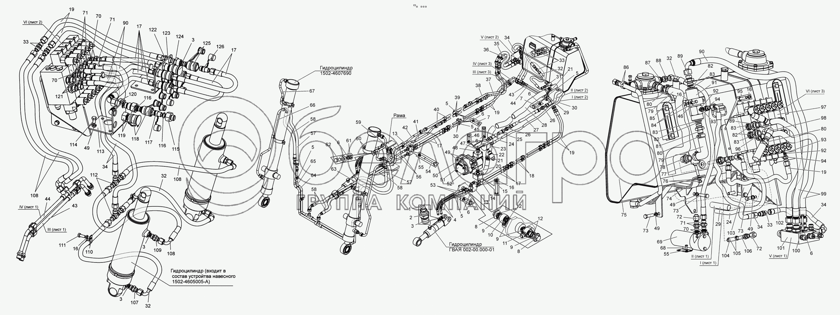 Каталог запасных частей к технике: МТЗ БЕЛАРУС 1502. Гидросистема 1502-4600010-В1