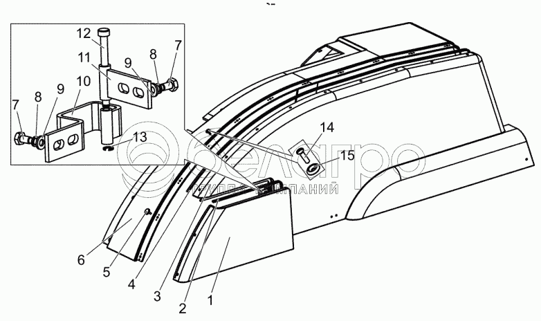 Каталог запасных частей к технике: МТЗ БЕЛАРУС 1502. Крыло левое