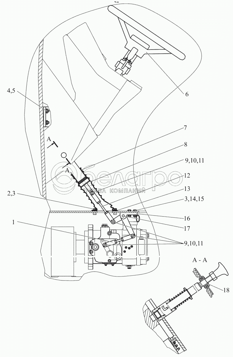 Каталог запасных частей к технике: МТЗ БЕЛАРУС 1502. Привод поворота рулевой