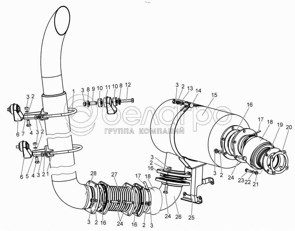Каталог запасных частей к технике: МТЗ БЕЛАРУС 1502. Система выпуска. Демпфер