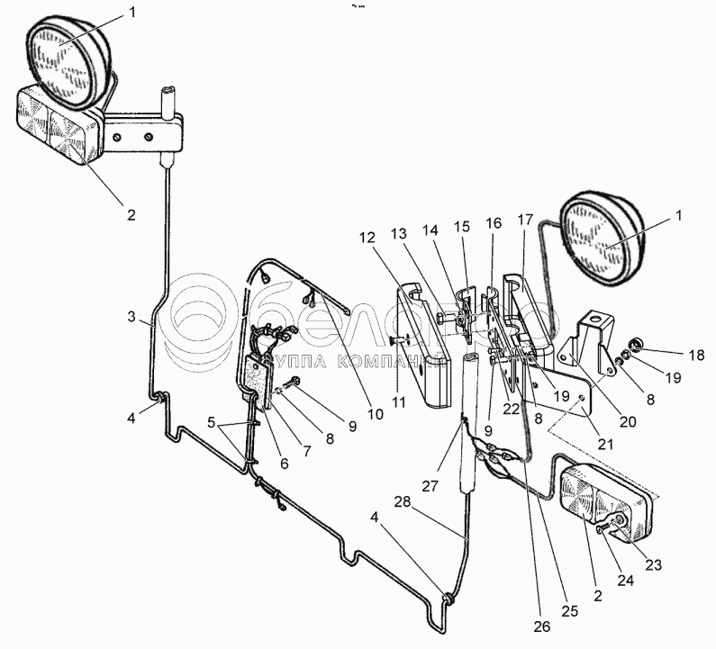 Каталог запасных частей к технике: МТЗ БЕЛАРУС 1502. Установка фонарей передних и фар дорожных