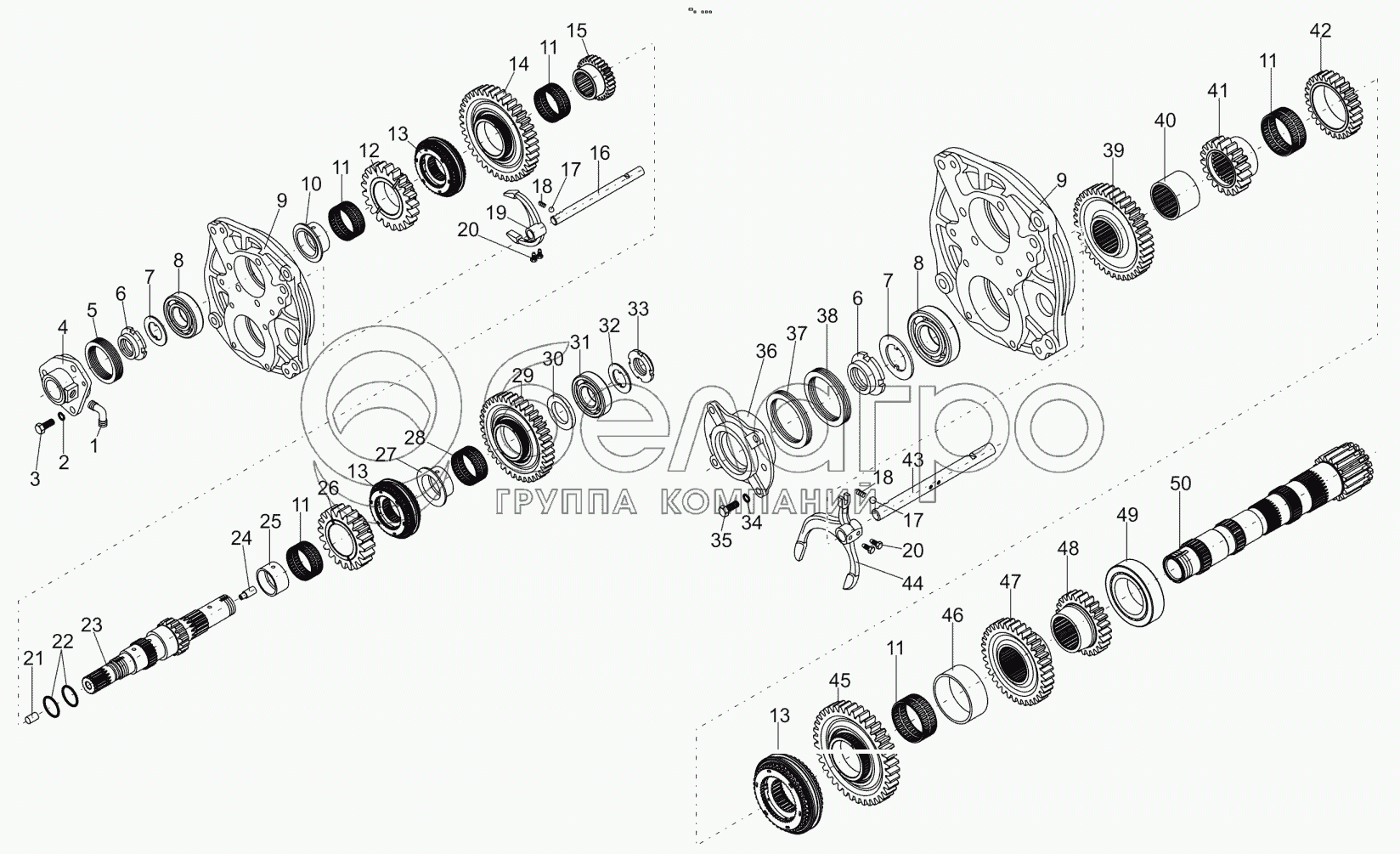 Каталог запасных частей к технике: МТЗ БЕЛАРУС 1502. Узел передач. Стакан. Вал промежуточный