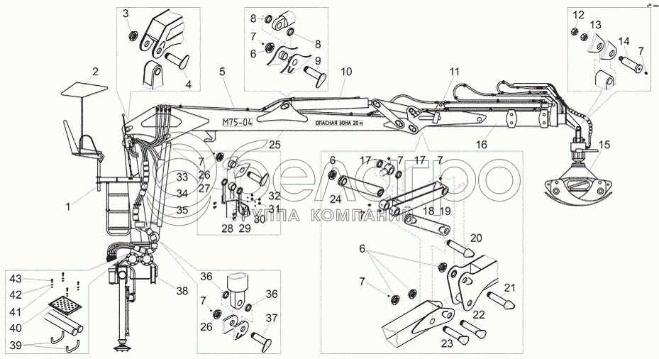Каталог запасных частей к технике: МТЗ М75-04. Манипулятор гидравлический М75-04